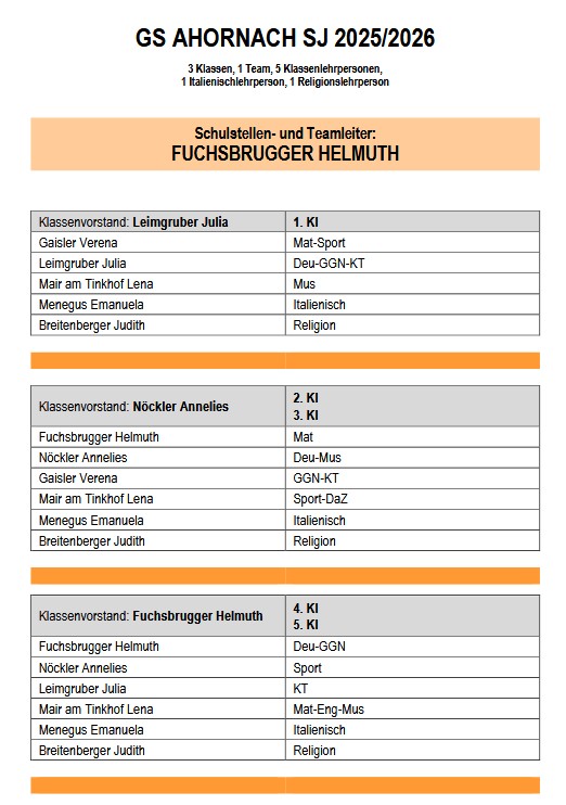 Unterrichtszeit/Fächer/Persönliche Sprechstunden Lp